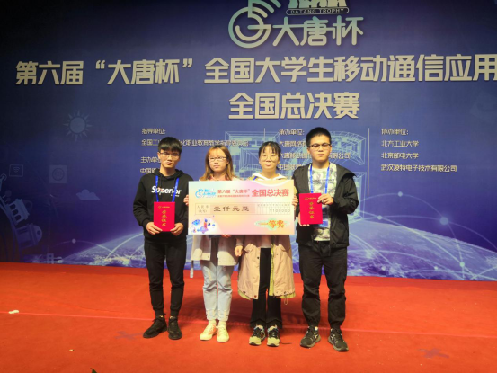 10月19日至20日,第六届“大唐杯”全国老员工移动通信应用创新大赛全国总决赛在北京举行,公司文兵、赵政春老师指导的队伍(参赛员工:欧阳从江、谌民迪、徐金玉、方欣)以优异的成绩荣获全国总决赛一等奖。