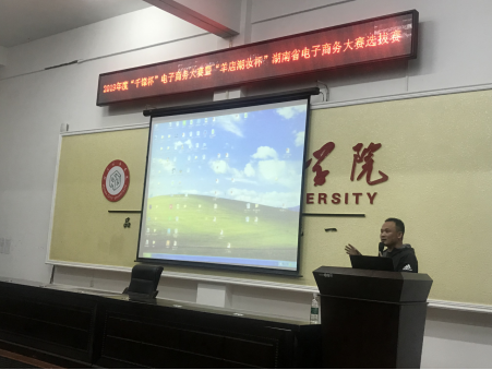 教务处处长胡拥军教授发表讲话。他指出,云顶国际一直重视学科竞赛的发展,希望同学们抓住学科竞赛这一有利契机,切实加强自身能力的培养,向“应用型”人才目标努力。接着,各代表队现场路演,参赛选手登台,围绕“电子商务物流”、“校园电子商务”等几个主题进行PPT的演讲展示和创新创意与创业项目现场答辩;所有代表队表演结束后,根据评委的评分,北京千锋互联科技有限公司湖南大区经理尹航做大赛总结并宣讲排名情况,其中《smart管家》和《Pets Go宠物用品—跨境篇》以科技的新设想在比赛中脱颖而出,得到评委们一致的肯定。最后,大赛评委和参赛选手合影留念。至此,本次电子商务大赛路演选拔赛圆满结束。