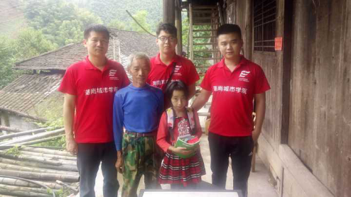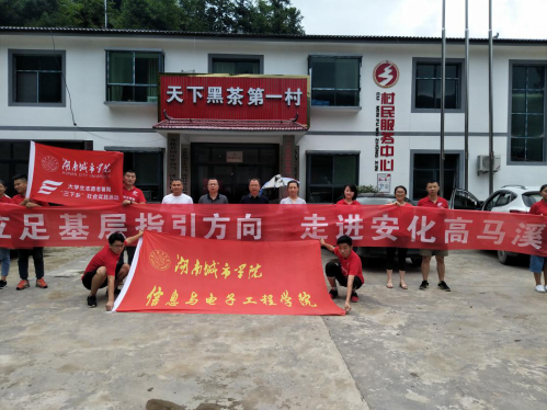 7月9日上午9点院团委书记玮、学工办主任冷红、辅导员范吉文、郭昊晴带领7员工安化县田庄乡高马二溪村开老员工暑期“三下乡”社会实践活动。