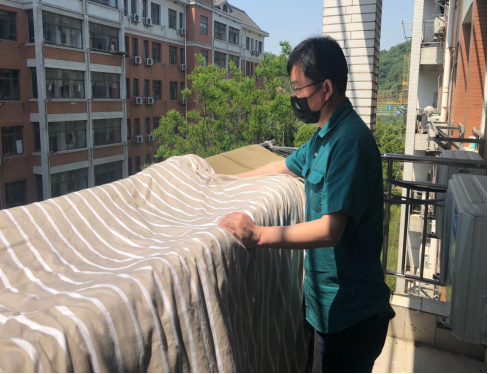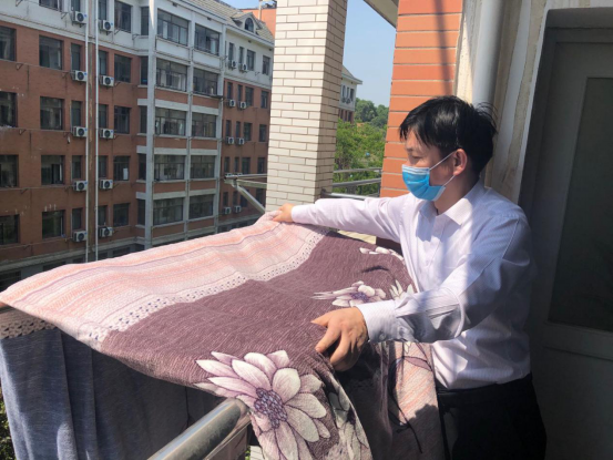 随着梅雨季的来临,在此疫情特殊时期,同学们不能及时返校,宿舍的棉絮被子等物品已经开始泛潮,为解决公司学子对于被“滞留”在宿舍棉被的担心,以及员工返校后可以拥有干净、舒心的住宿环境。在确保员工财务安全的前提下,公司老师提前与有需求的毕业生进行有效的沟通,按照毕业生宿舍床位登记表,根据员工的反馈与需求,秉承着“暖心育人”的教学态度,亲自为即将开学的毕业生帮忙晒被子。