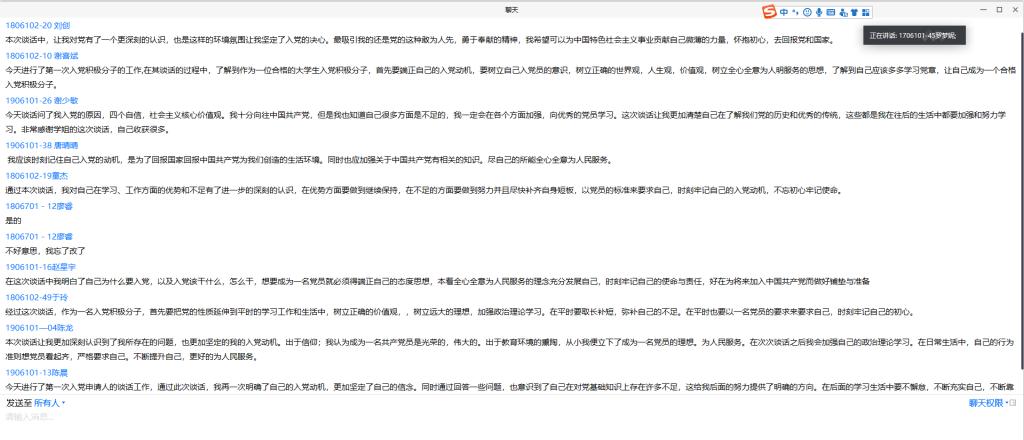 为引导新一批入党申请人端正入党动机、摆正入党态度、明确入党要求与努力方向,公司党支部要求对新一批递交入党申请的员工进行谈话。202042日晚七点,公司员工各党支部分小组同时进行了同新一批入党申请人的谈话工作,本次谈话工作采用的是线上会议的形式,由一名正式党员与一至两名预备党员组成考核人员对新一批入党申请人的思想动态进行初步了解,并对其的认知盲区做出相应解答,方便之后公平公正的发展为入党积极分子。