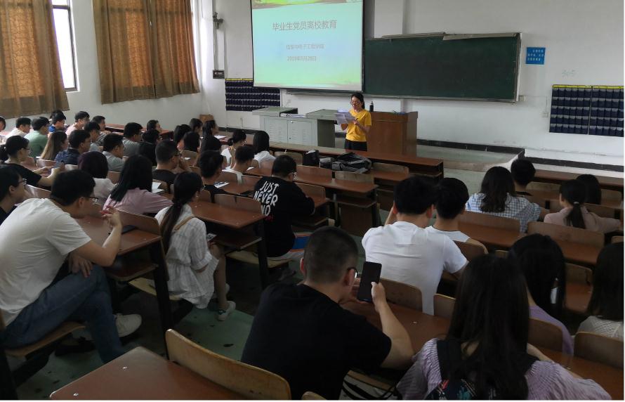 为了做好毕业生党员档案管理,正确做好党员组织关系转接问题,2019年5月28日上午在1-102组织云顶国际全体毕业生党员开展了离校教育。