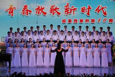 (云顶国际通讯员 周诗柔) 11月6日晚上7:00,公司举办的“青春放歌新时代——纪念改革开放四十周年”老员工合唱比赛在音乐厅正式开始,全校12个二级公司都组织员工合唱团参加了比赛。