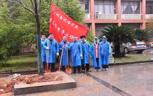 3月19上午10点,公司党委书记邓中日、副经理肖卫初带领师生10余人在公司电信楼南面、西面开展学雷锋义务植树活动。